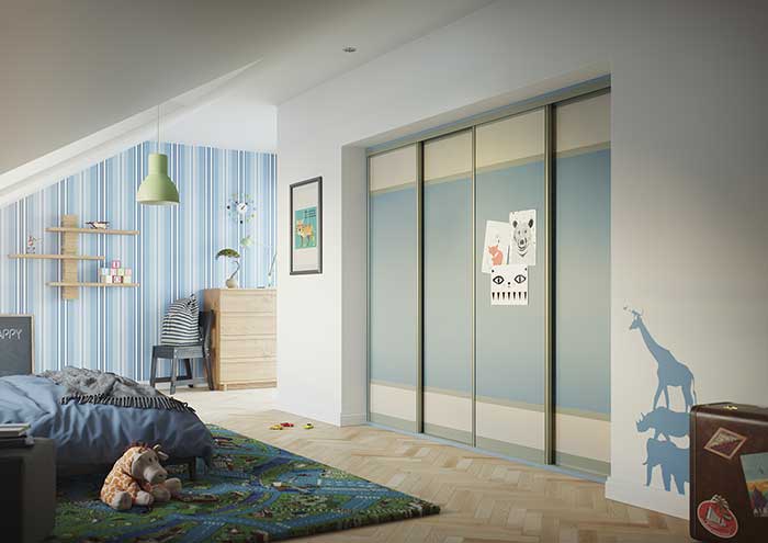 Made to measure sliding wardrobes from Woodlands of Hertford are available in an extensive range. Stunning plain colour glass, matt glass, sparkly effect glass, silver or bronzed mirror, laminates and acrylics are all available. All glass is safely backed and crossbars are positioned as required.
